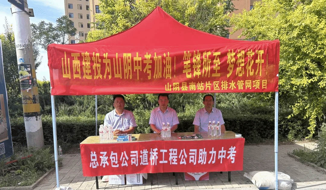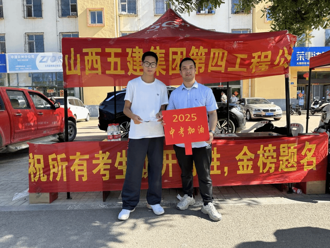 五建集團(tuán)各基層單位、項(xiàng)目部在駐地考場(chǎng)周邊積極開展助考服務(wù)。在朔州市應(yīng)縣一中考點(diǎn),志愿者們提前搭建服務(wù)站,為考生及家長(zhǎng)準(zhǔn)備了礦泉水、藿香正氣水等消暑物資。在大同市云州區(qū)考點(diǎn),志愿者們手持“中考必勝”加油牌,為過(guò)往考生送上鼓勵(lì),幫助他們緩解考前壓力。