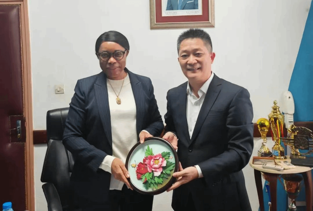隨后,倪華光拜會(huì)中國駐喀麥隆大使館經(jīng)商處參贊郭建軍。倪華光感謝使館長期以來對企業(yè)的關(guān)心與支持,介紹了集團(tuán)在喀麥隆的業(yè)務(wù)發(fā)展與規(guī)劃,表示將在大使館的指導(dǎo)下,發(fā)揮全產(chǎn)業(yè)鏈優(yōu)勢,深度參與喀麥隆國家重點(diǎn)領(lǐng)域項(xiàng)目建設(shè)。