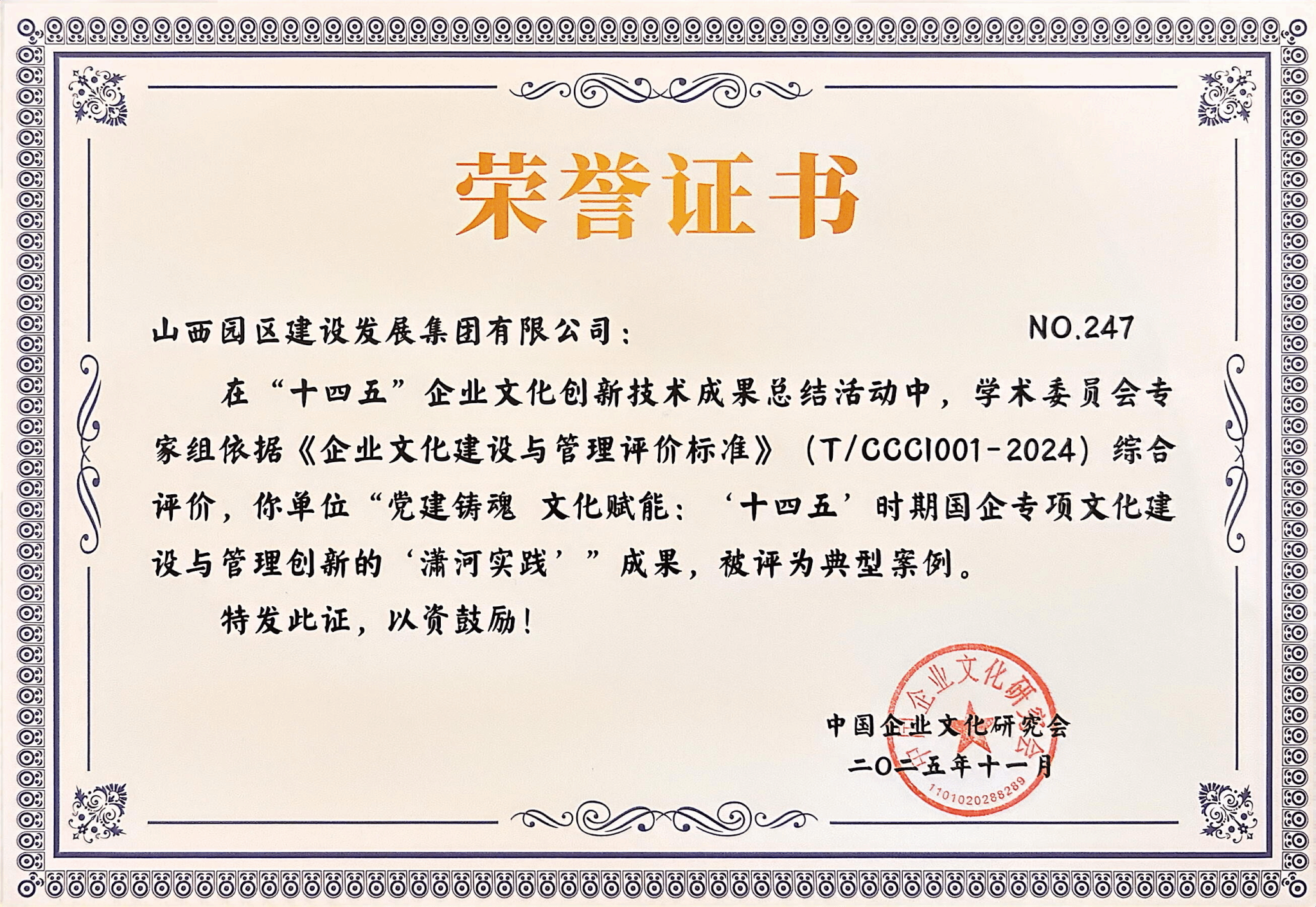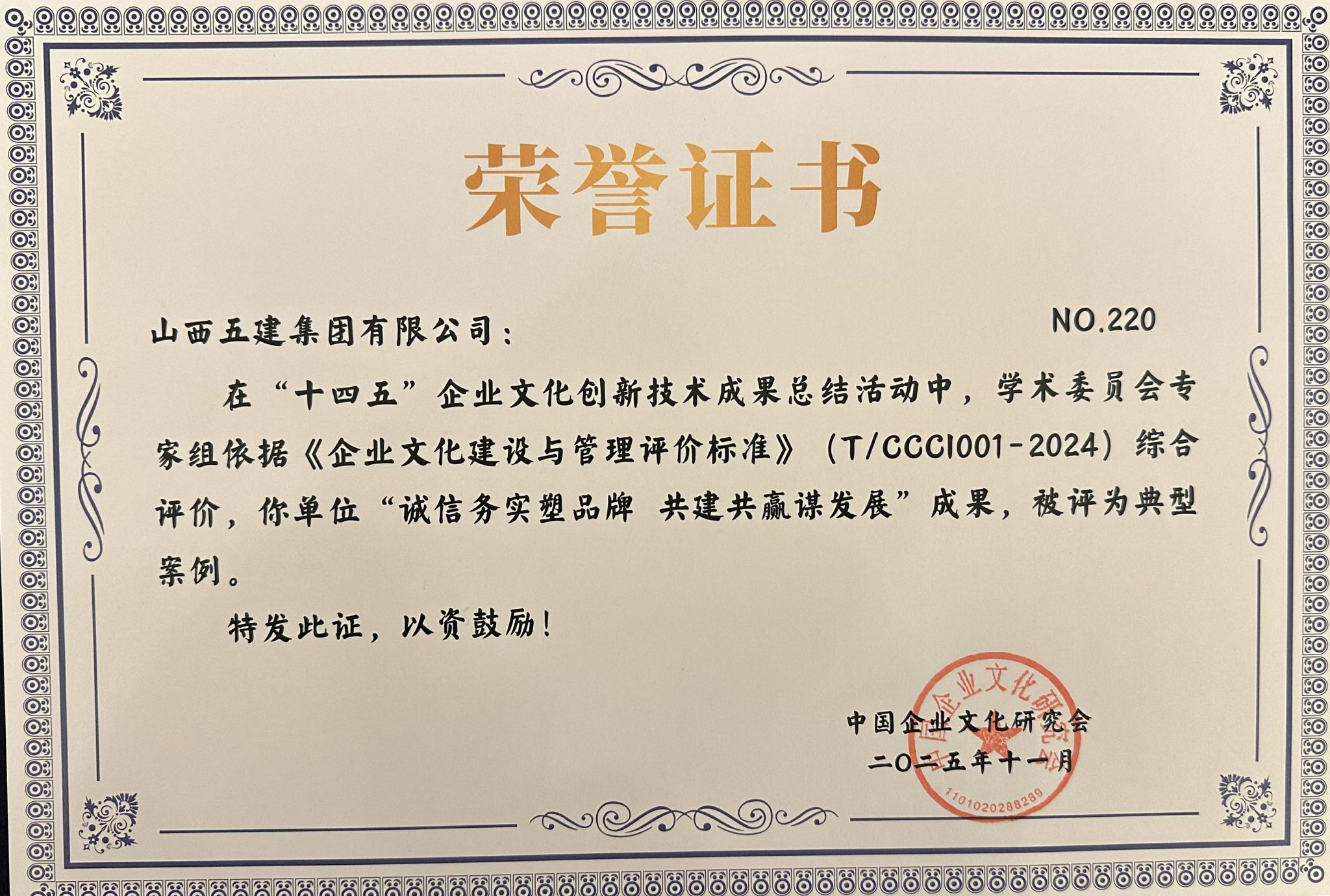 11月20日至22日,由中國企業(yè)文化研究會主辦的“系統(tǒng)回望‘十四五’全面規(guī)劃‘十五五’·促進企業(yè)文化創(chuàng)新——中外企業(yè)文化2025峰會”在上海召開。會上,山西建投榮獲“十四五”企業(yè)文化建設與管理5A級企業(yè),是山西省唯一獲評5A級企業(yè)的省屬企業(yè);集團申報的《打造“五維賦能”文化引擎 激發(fā)高質(zhì)量發(fā)展內(nèi)生動力》榮獲“十四五”企業(yè)文化創(chuàng)新技術成果典型經(jīng)驗。