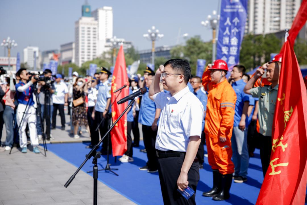 活動(dòng)現(xiàn)場,安裝集團(tuán)黨委書記、董事長王利民領(lǐng)誓,100余名企業(yè)員工代表和部分救援隊(duì)伍進(jìn)行安全宣誓,與會(huì)人員簽名承諾,并巡視展區(qū)。