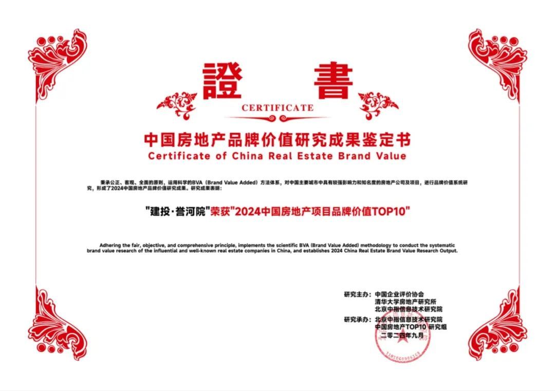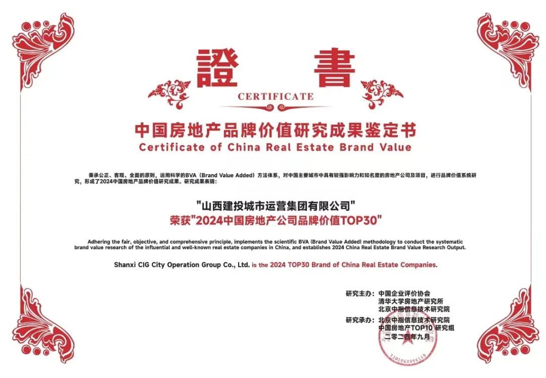 ▲2024中國房地產(chǎn)公司品牌價值top10(國企)證書