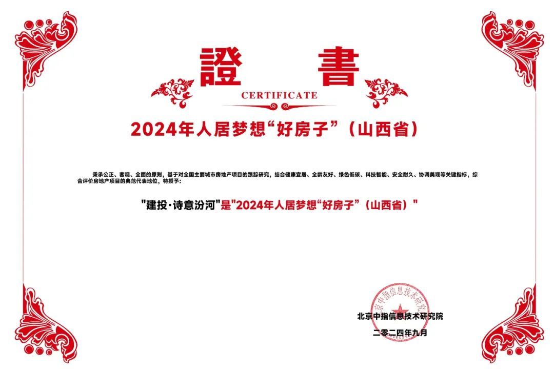 9月13日,由中國企業(yè)評價協(xié)會等單位聯(lián)合承辦的“2024中國房地產(chǎn)品牌價值研究成果發(fā)布會”在雄安新區(qū)召開,山西建投集團建投地產(chǎn)榮膺“2024中國房地產(chǎn)公司品牌價值TOP10(國企)”“2024中國房地產(chǎn)公司品牌價值TOP30”,建投地產(chǎn)打造的建投·譽河院項目榮獲“2024房地產(chǎn)項目品牌價值T0P10”榮譽,建投·詩意汾河項目獲評“2024年人居夢想‘好房子’”,成為高品質(zhì)人居的典范代表。