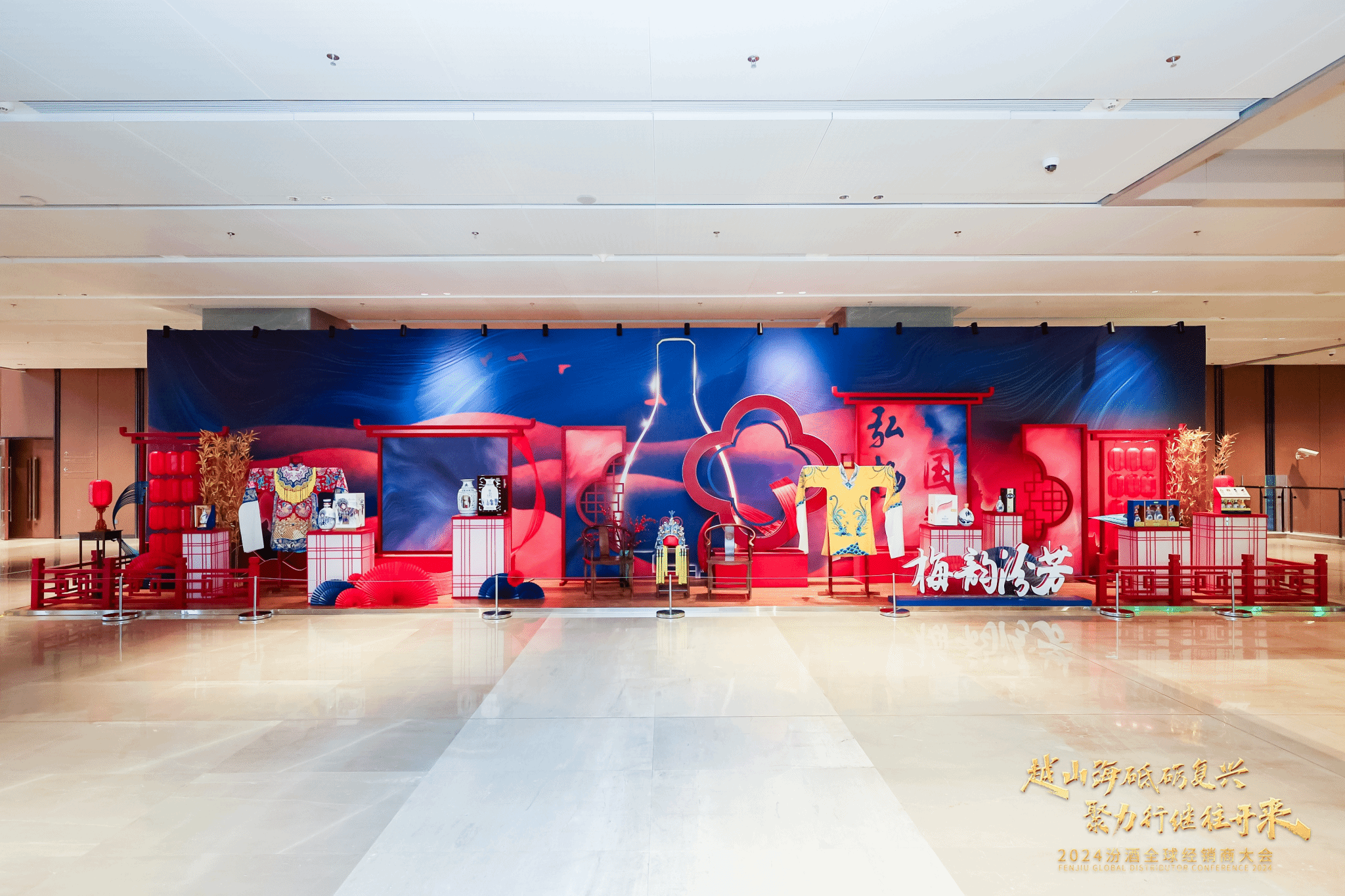 會議中心一層序廳空間設置的“山西高品質生活展館”尤為引人注目,旨在通過一系列高端、精致的產品展示,向全球經銷商和參觀者展現(xiàn)山西獨特的文化底蘊和高品質生活理念。