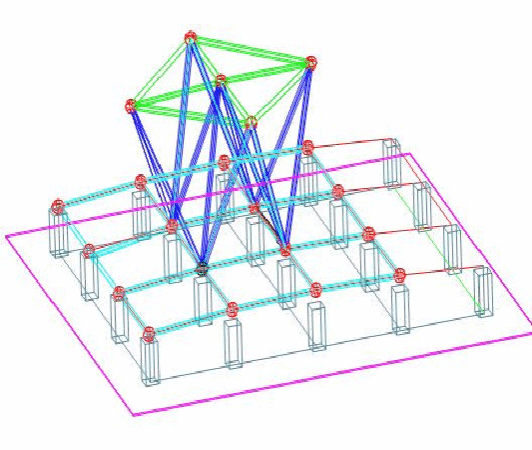 面對安裝高度高、跨度大,造型復雜,結(jié)構(gòu)桿件數(shù)量多、規(guī)格各異等多重挑戰(zhàn),項目團隊迎難而上,為確保頂升安裝精準度和施工安全,項目部精心策劃,采用了“地面拼裝、整體頂升、高空散裝”相結(jié)合的施工方法,利用“分段組裝、撓度控制法”從大廳中間區(qū)域起步,向四周延伸,直至整個網(wǎng)架安裝成型。在頂升過程中,設(shè)置8處頂升點,實時監(jiān)測,同步控制,8臺大型液壓設(shè)備同步起吊,相鄰點同步誤差控制在±15毫米以內(nèi)。