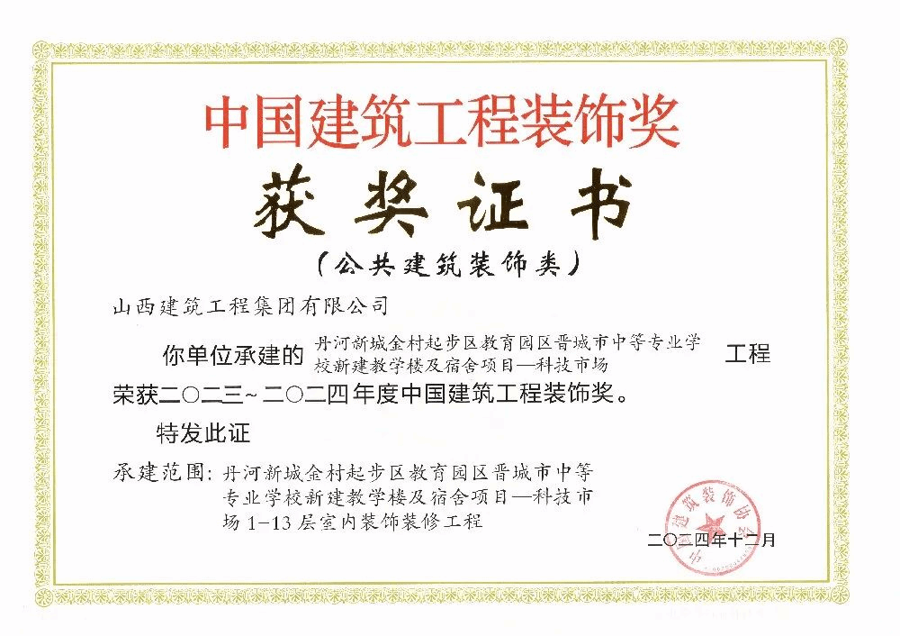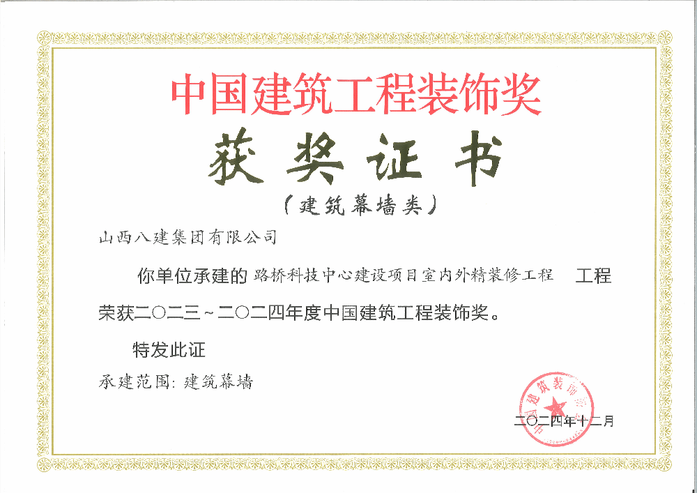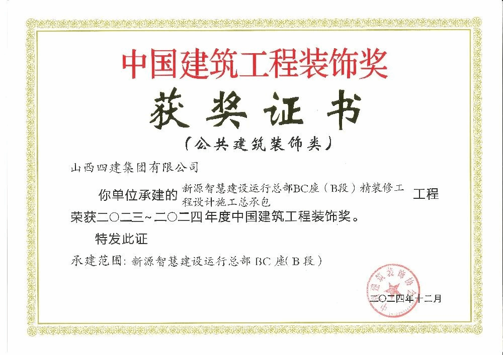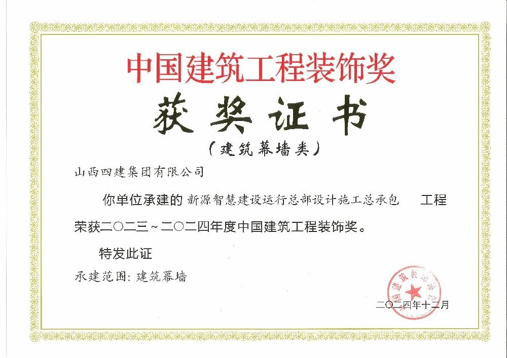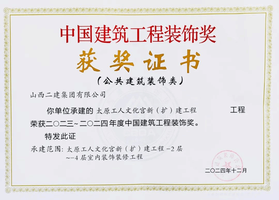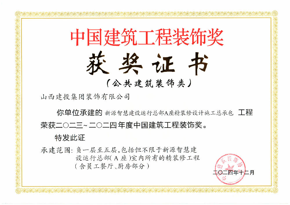 在中國建筑裝飾協(xié)會九屆四次理事會九屆六次常務理事會暨中國建筑裝飾協(xié)會成立40周年大會上,建投集團承建的13個項目榮獲2023年度中國建筑工程裝飾獎。此外,在中國化工建設企業(yè)協(xié)會公布的2024年化工建設工程質(zhì)量評價結(jié)果(化學工業(yè)優(yōu)質(zhì)工程獎)中建投集團承建的3個項目榜上有名。