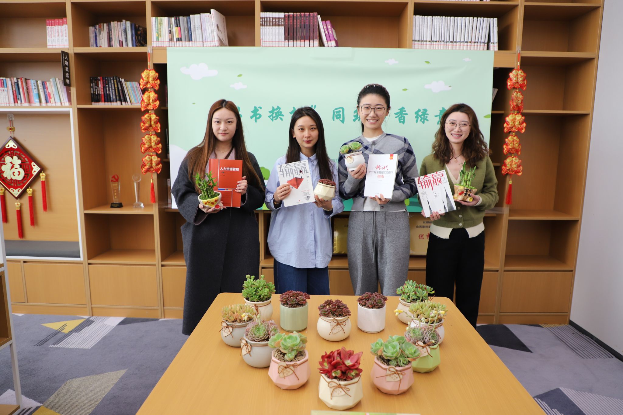 園區(qū)建發(fā)集團(tuán)別出心裁地開展“以書換樹”書籍置換活動(dòng),號(hào)召職工用閑置書籍換取小綠植。70余名職工積極響應(yīng),捐贈(zèng)書籍。此次活動(dòng)不僅豐富了職工書屋的藏書,還通過(guò)“以書換樹”的形式,讓職工們?cè)谙硎荛喿x樂(lè)趣的同時(shí),為環(huán)保事業(yè)貢獻(xiàn)了一份力量,實(shí)現(xiàn)了知識(shí)與綠色的雙重傳遞。