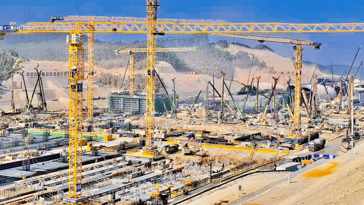 在佛山市和肇慶市交界處一片山體中的低洼狹長地帶,機械轟鳴,車輛穿梭忙碌運輸,這是廣州至湛江高速鐵路珠三角樞紐機場站前工程施工現(xiàn)場,7臺山西建投工程機械公司生產(chǎn)的塔吊正在緊張作業(yè)。此次參與項目建設的塔吊額定起重量16噸,最大工作幅度75米、最大起升高度307米,憑借其良好的起重性能和穩(wěn)定表現(xiàn),助力項目建設加速推進。