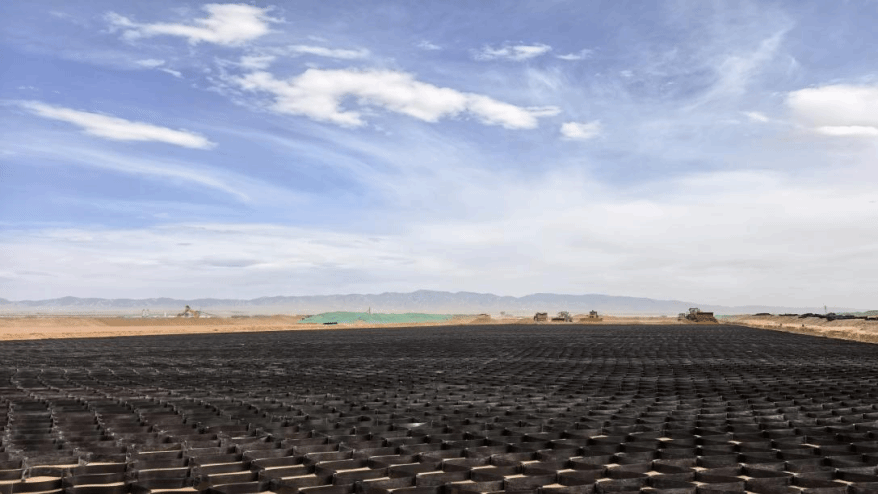 面對(duì)這一技術(shù)難題,項(xiàng)目團(tuán)隊(duì)采用“水墜法碾壓”技術(shù),通過(guò)科學(xué)控制注水量和碾壓遍數(shù),快速提升沙土地基的密實(shí)度。同時(shí),針對(duì)地質(zhì)薄弱區(qū)域,采用分層換填工藝,用級(jí)配砂礫石逐步置換軟弱土層,并配合鋪設(shè)土工格柵和土工格室,形成立體加筋體系,顯著增強(qiáng)地基的整體性和抗變形能力,為后續(xù)道面施工搶出堅(jiān)實(shí)、穩(wěn)定的作業(yè)面。