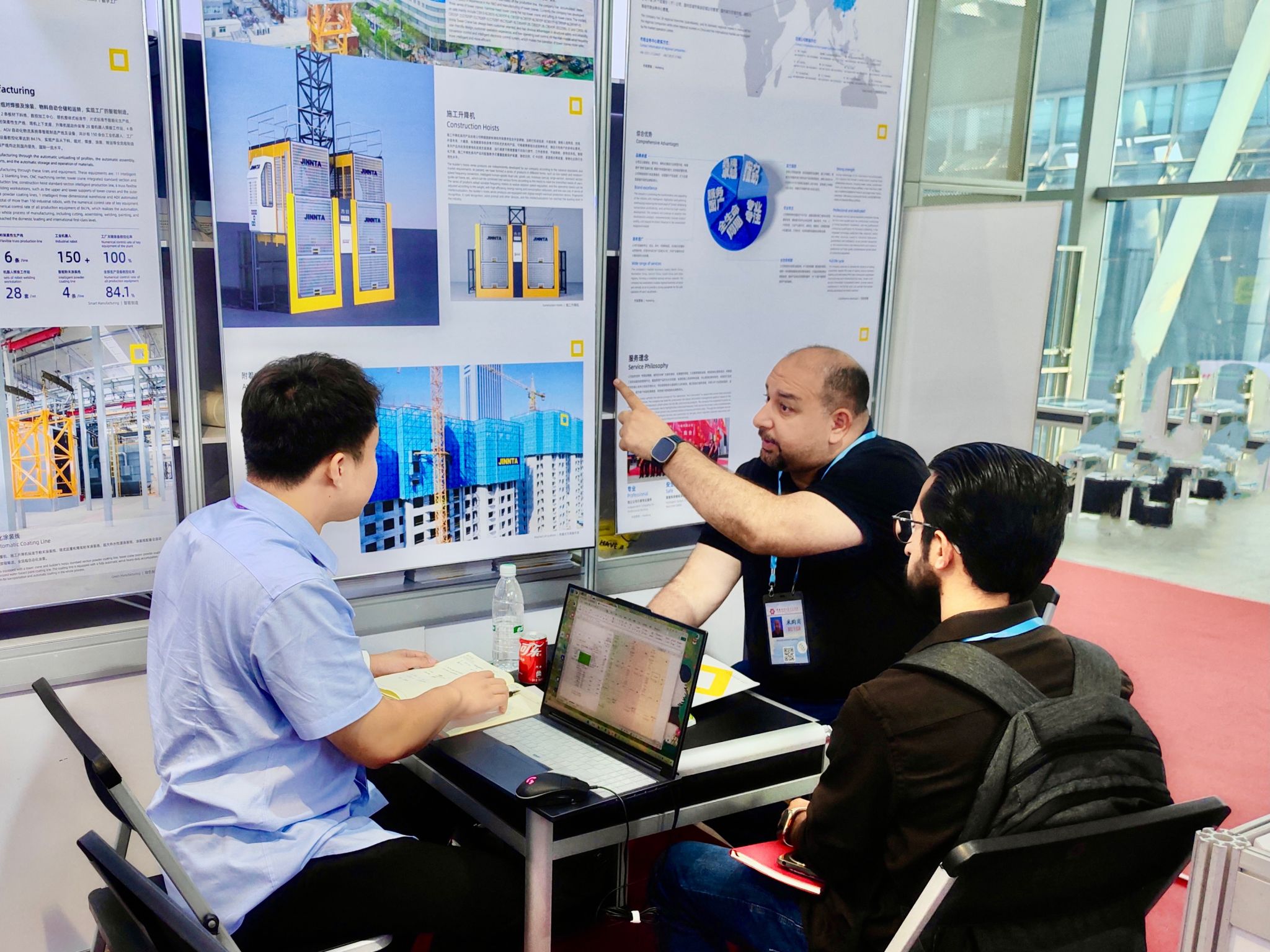 展會上,公司通過動態(tài)模型演示、技術(shù)參數(shù)詳解、案例成果展示等多種形式,向海內(nèi)外客商全方位展示公司新品智能建筑機(jī)器人,主營產(chǎn)品塔式起重機(jī)、施工升降機(jī)、附著式升降腳手架等系列產(chǎn)品,立體化呈現(xiàn)晉塔在智能制造、綠色研發(fā)、安全保障等方面的成果和優(yōu)勢。