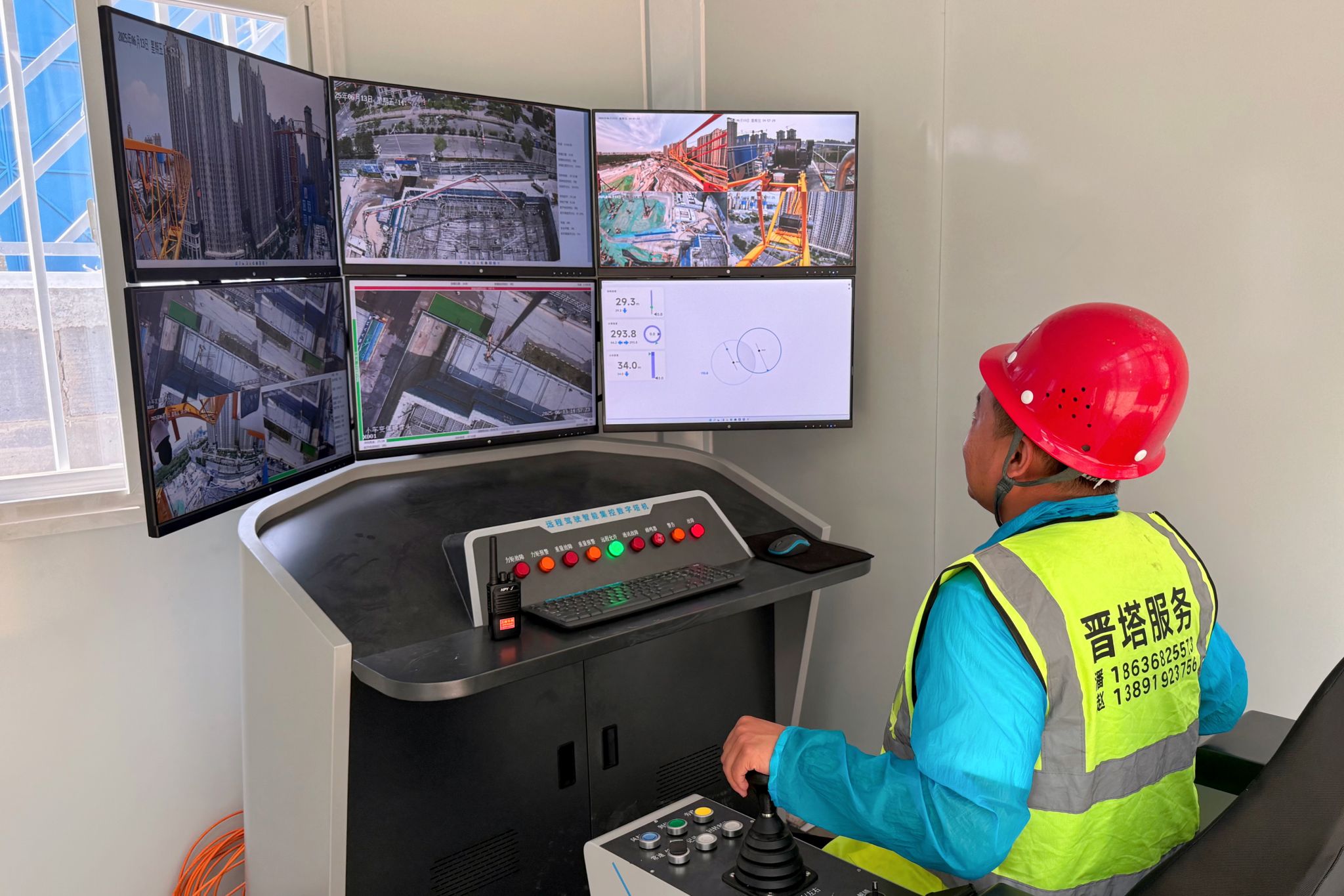 在西安市璞逸東方商住綜合體項目中,該技術(shù)的優(yōu)勢展現(xiàn)得淋漓盡致:面對多棟樓體同步施工、精細吊裝與高效作業(yè)并存的需求,塔機司機可根據(jù)不同施工需求靈活選擇操作模式。在吊裝精度要求極高的住宅樓梯預(yù)制板時,可在地面5G集控艙內(nèi),通過曲面大屏清晰觀察數(shù)十米高空的構(gòu)件對接過程,實現(xiàn)精準(zhǔn)安裝;而在吊裝商業(yè)樓輕質(zhì)建材時,則可切換至高空駕駛艙操作,有效提升作業(yè)效率。兩種模式數(shù)據(jù)實時同步,在切換作業(yè)樓體時,塔機的力矩、幅度等參數(shù)可快速自適應(yīng)調(diào)整,省去重復(fù)調(diào)試環(huán)節(jié),使單樓吊裝效率提升15%以上。