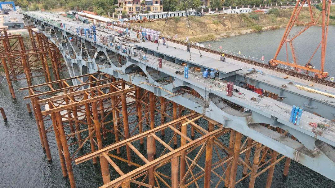 2023年伊始,項目在山西建投三建集團的科學(xué)部署和統(tǒng)籌安排下迅速復(fù)工復(fù)產(chǎn),完成了車行橋人行輔橋支腿吊裝、焊接和東輔橋、西輔橋的鋼套筒安裝。最終,項目于3月12日實現(xiàn)了大橋的全部合龍。