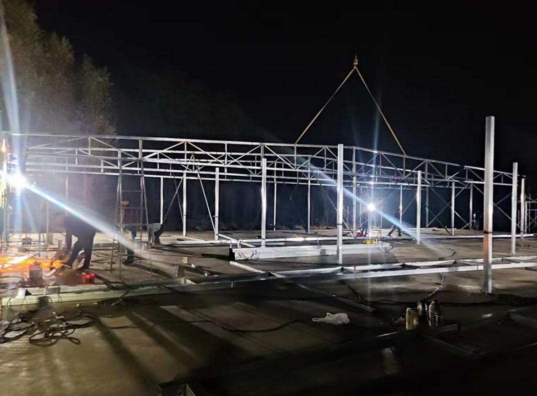 集團(tuán)接到忻州市級方艙醫(yī)院建設(shè)任務(wù)后,聞令而動,迅速統(tǒng)籌解決人員、材料、機(jī)械設(shè)備等,以最短的時間集結(jié)精干隊伍400余人,以最快速度奔赴忻州市執(zhí)行方艙醫(yī)院建設(shè)任務(wù)。面對時間緊、任務(wù)重,全體參建人員發(fā)揚特別能吃苦、特別能戰(zhàn)斗的拼搏精神,嚴(yán)格執(zhí)行24小時輪班制,分區(qū)域、分組協(xié)同連續(xù)奮戰(zhàn),確保現(xiàn)場不停工,提速再提速。