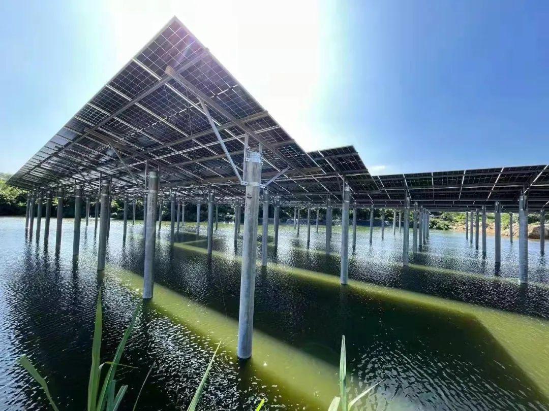這就是山西建投一建集團(tuán)EPC總承包的中航廉江良垌90MW漁光互補(bǔ)光伏電站項目,該項目是一建集團(tuán)在國家“雙碳”目標(biāo)的背景下,在自身光伏行業(yè)深耕多年的經(jīng)驗傳承下,結(jié)合當(dāng)?shù)氐沫h(huán)境特點,采用“漁光互補(bǔ)”設(shè)計方式,最終將規(guī)劃區(qū)域打造成集光伏電站建設(shè)、光伏先進(jìn)技術(shù)示范、特色水產(chǎn)品養(yǎng)殖、特色漁業(yè)休閑旅游、特色農(nóng)業(yè)種植為一體的綜合開發(fā)基地。