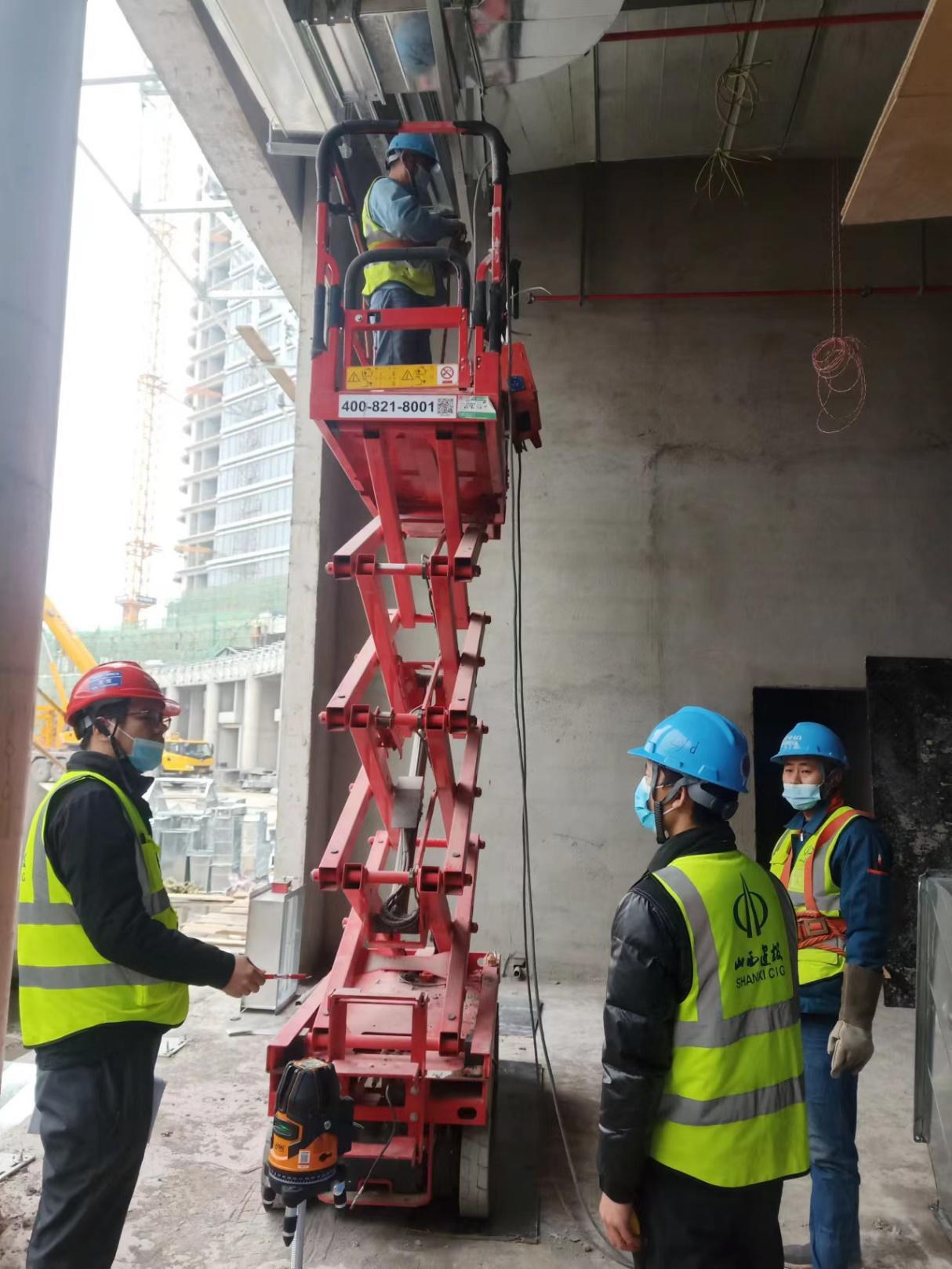 在3號(hào)酒店項(xiàng)目施工現(xiàn)場(chǎng),升降機(jī)上上下下,載著工人和各種材料到達(dá)指定的位置;工作面上電光迸濺,焊工有條不紊地焊接鋼管;運(yùn)料車(chē)穿梭往來(lái),高空作業(yè)車(chē)高舉車(chē)臂……處處都是忙碌的身影,一派繁忙的景象。