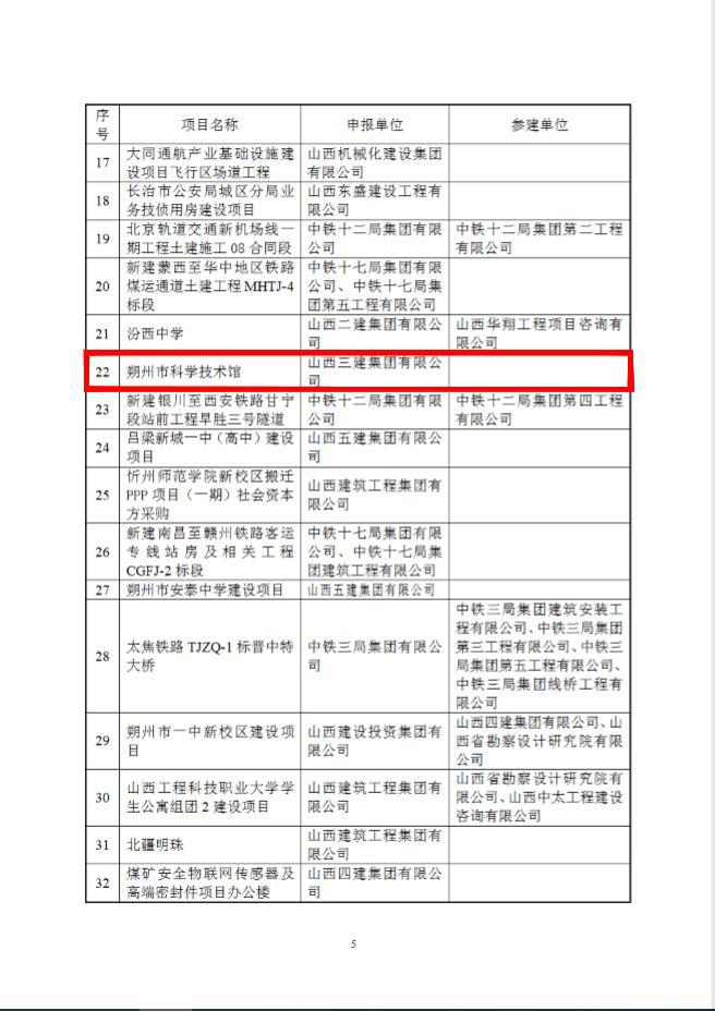 近日,從山西省土木建筑學(xué)會傳來喜訊,公司承建的永濟市體育中心一場三館建設(shè)項目、朔州市科學(xué)技術(shù)館、晉城市科技研發(fā)基地(科技企業(yè)孵化器)中試車間及中試車間地下室工程、萬柏林區(qū)東社贊城城中村改造建設(shè)項目(一期)2#樓等四項工程榮獲第十七屆“太行杯”土木建筑工程大獎。