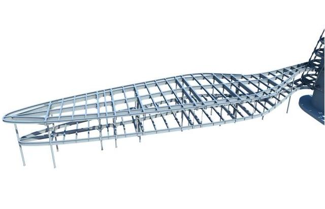 太原市水上運(yùn)動(dòng)中心項(xiàng)目位于汾河太原段綜合治理三期工程蓄水河段(通達(dá)橋至十號(hào)橋段),是全國(guó)首個(gè)內(nèi)陸天然河道布置的專(zhuān)業(yè)賽道,承辦了“二青會(huì)”皮劃艇、賽艇、龍舟及槳板四大比賽項(xiàng)目。該項(xiàng)目是公司自主深化設(shè)計(jì)、自主制造、自主安裝、全過(guò)程模擬分析與監(jiān)測(cè)的項(xiàng)目,也是國(guó)內(nèi)為數(shù)不多的異形曲面式懸掛結(jié)構(gòu)體系建筑。項(xiàng)目以帆狀的立面及皮劃艇狀的平面作為建筑外形,整體造型輕盈靈動(dòng),寓意揚(yáng)“帆”起航,被譽(yù)為太原網(wǎng)紅打卡地——“大帆船”。項(xiàng)目獨(dú)特的建筑風(fēng)格與汾河水畔的園林綠化完美融合,將體育運(yùn)動(dòng)融于園林景觀之中,構(gòu)建以健身活動(dòng)和文化娛樂(lè)為特色的綠色生態(tài)景區(qū)。