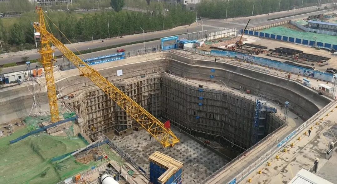 項目于2017年3月開工,通過對超深基坑變形機理與時空效應的研究,將復合土釘墻+樁錨結構的支護深度發(fā)展到31.4米的深度,通過采取技術措施形成了三軸攪拌樁在較硬地質層34米深度的施工關鍵技術,形成了承壓水地層中錨桿施工新技術和新工藝等多項技術成果,保證了超深基坑工程的安全。