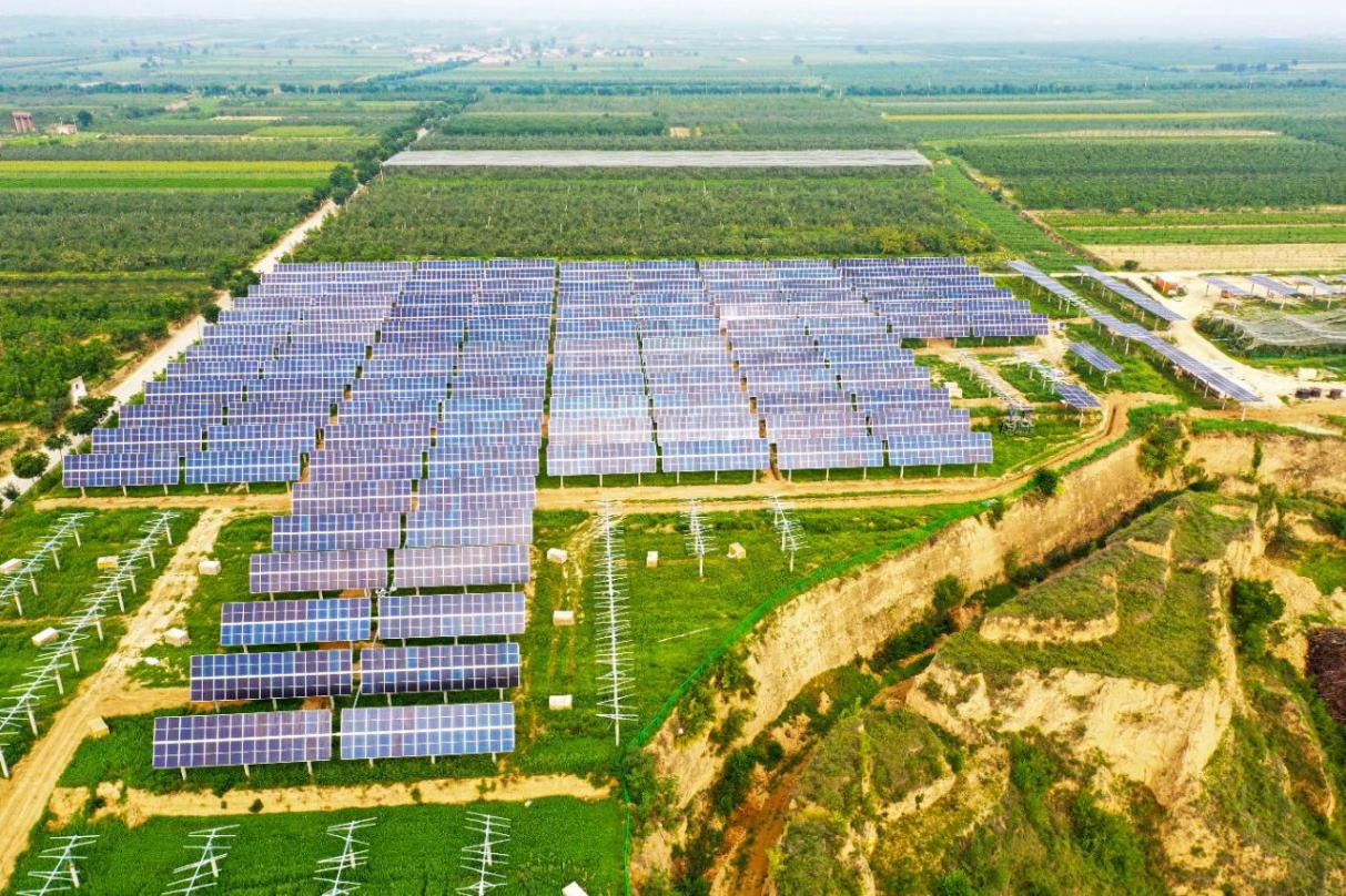 該工程位于陜西省渭南市合陽縣金峪鎮(zhèn),占地面積約3400畝,光伏發(fā)電系統(tǒng)由37個方陣組成,其中包含64MW固定式方陣,24MW固定可調(diào)方陣,12MW平單軸方陣,選用375瓦Perc雙面單晶硅組件。作為國家第三批領(lǐng)跑者計劃10個“應(yīng)用領(lǐng)跑者基地”之一,三峽新能源渭南光伏發(fā)電100MWp工程是集光伏、農(nóng)業(yè)和旅游為一體的新型復(fù)合型光伏電站,實現(xiàn)了發(fā)展清潔能源、生態(tài)修復(fù)、特色旅游等多產(chǎn)業(yè)融合的目標,具有良好的經(jīng)濟效益和社會效益,對促進地方經(jīng)濟發(fā)展具有重要意義。