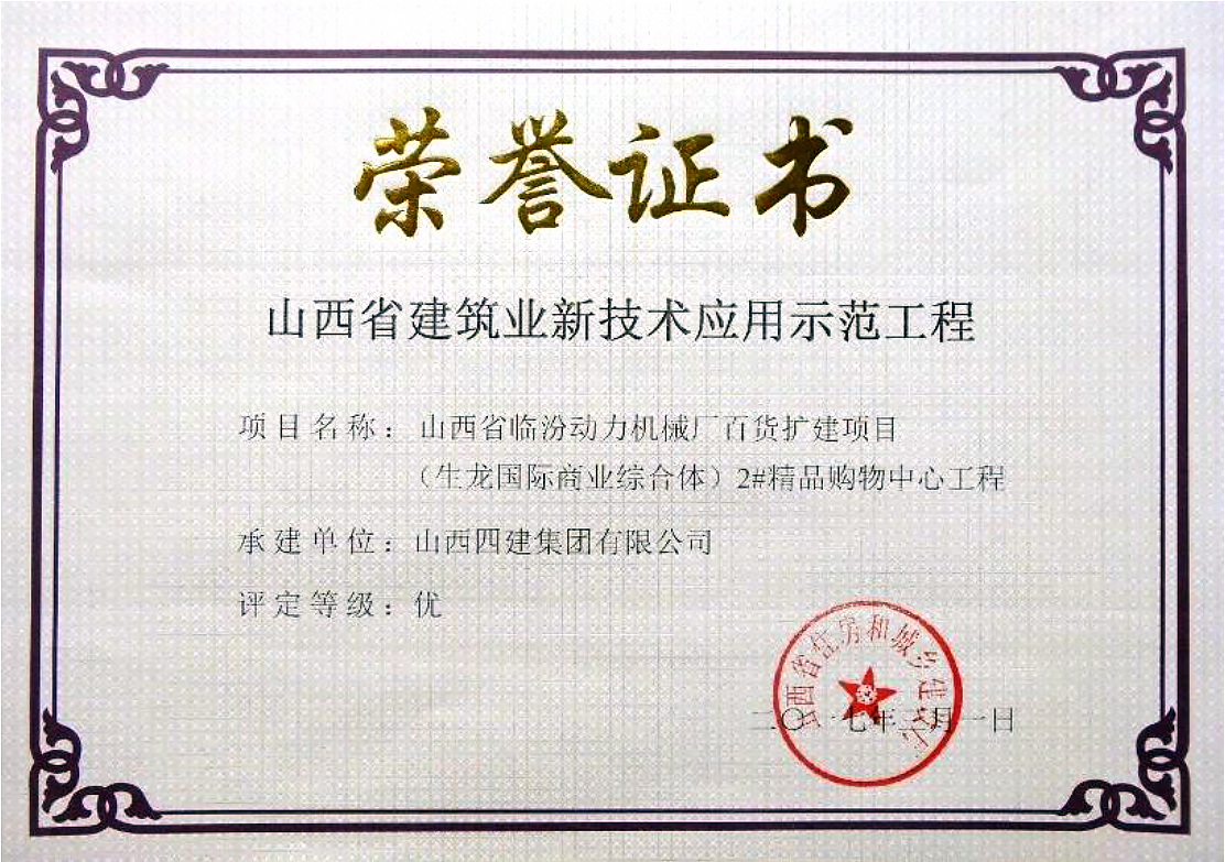 山西省臨汾動力機械廠百貨擴建項目(生龍國際商業(yè)綜合體)2#精品購物中心