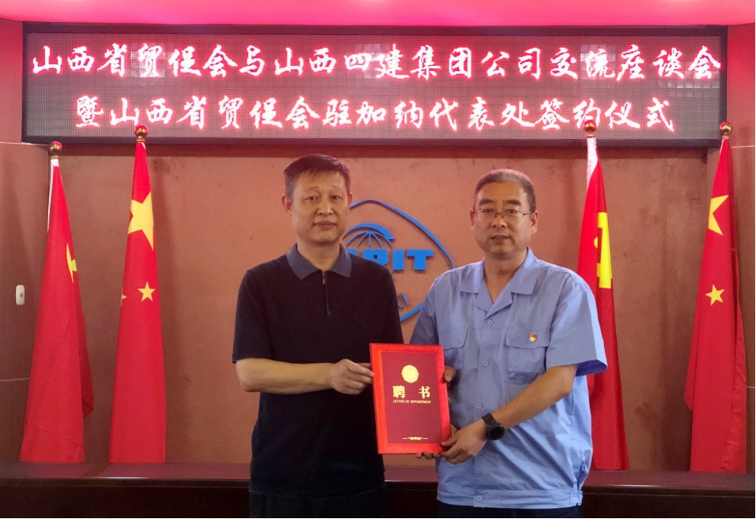 7月30日,公司與山西省貿(mào)促會舉行交流座談會暨駐加納代表處簽約儀式,山西省貿(mào)促會副會長李秀生、公司海外事業(yè)部總經(jīng)理楊軍偉出席。