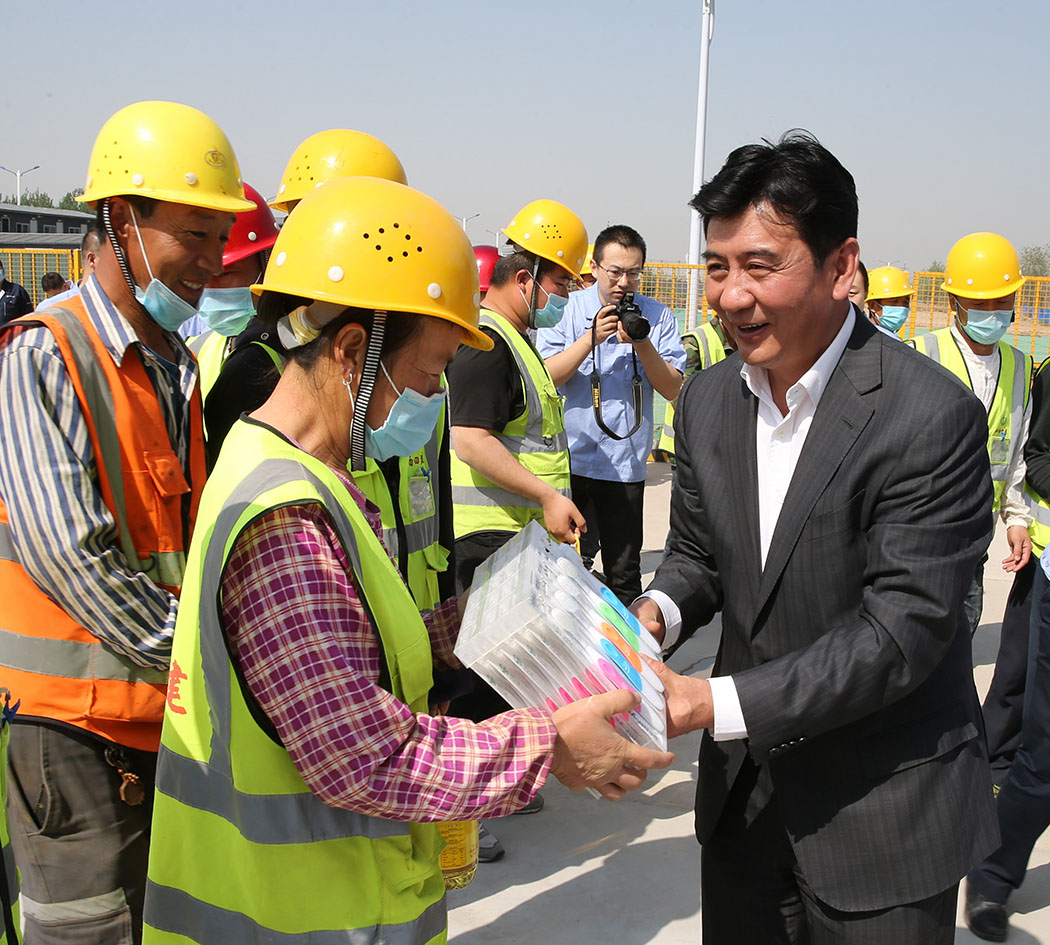 5月1日,山西建投黨委委員、工會(huì)主席溫剛,工會(huì)副主席胡春栓等一行來(lái)到公司龍城新苑項(xiàng)目部向一線勞動(dòng)者送來(lái)節(jié)日的慰問(wèn)。黨委書(shū)記、董事長(zhǎng)杜銳陪同慰問(wèn)。