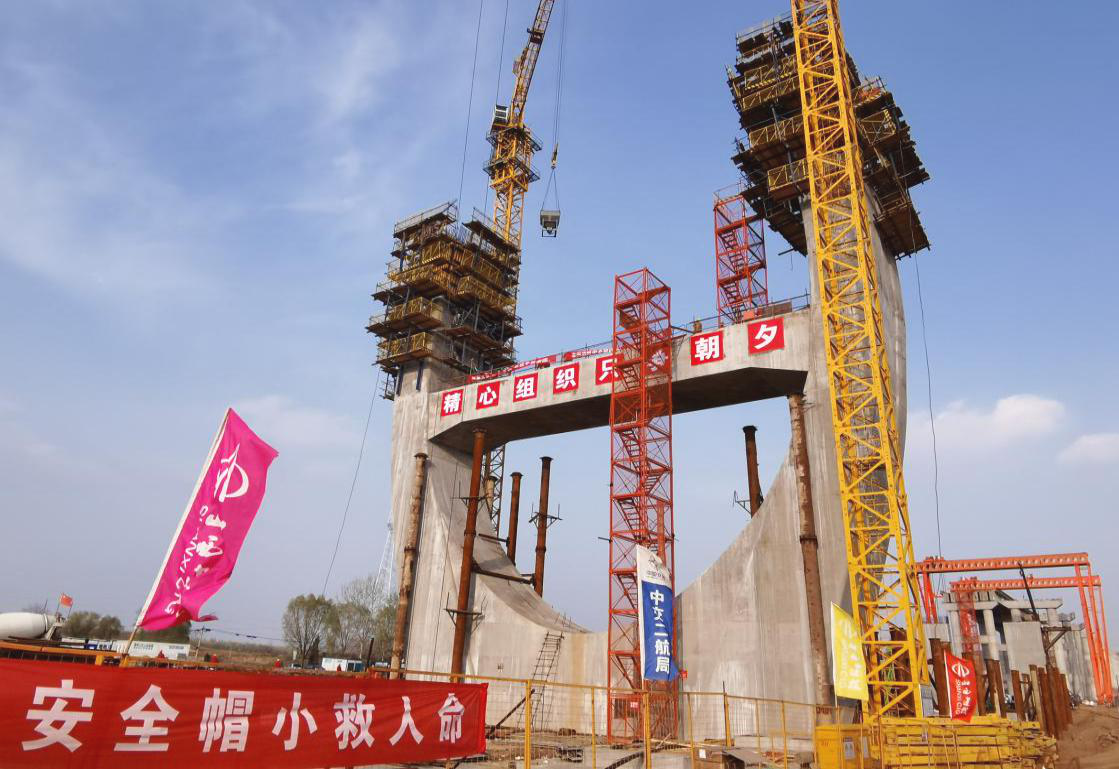 丹河特大橋是本項目的重點難點,指揮部實行包保制度,打掉這只困擾工程進度的“攔路虎”。截止目前,丹河特大橋主塔建設已完成第十二節(jié)澆筑施工,太焦鐵路上跨橋已完成跨線施工作業(yè),目前正在進行剩余箱梁架設及橋面系施工,六月底前可實現貫通。