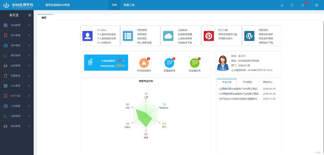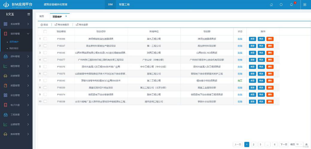BIM平臺(tái)項(xiàng)目管理模塊界面