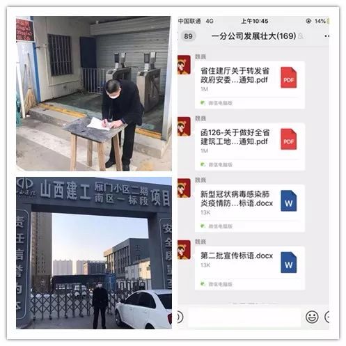 根據公司統(tǒng)一安排部署,九分公司高度重視、積極應對、周密部署,正式下發(fā)《九分公司關于做好新型冠狀病毒感染肺炎疫情安全防控專項應急預案的通知》,進一步明確應急領導小組的工作目標、工作原則等,明確如何預防控制、應急保障措施等。同時,利用微信群等途徑及時向分公司全體員工發(fā)布關于疫情防控的工作提示,確保信息暢通,切實保障在外員工的身體健康,規(guī)范疫情控制進程中的具體作業(yè)行為,減輕或消除突發(fā)事件引起的危害和影響。并要求項目部值班人員佩戴口罩,嚴格進出現場人員登記制度。