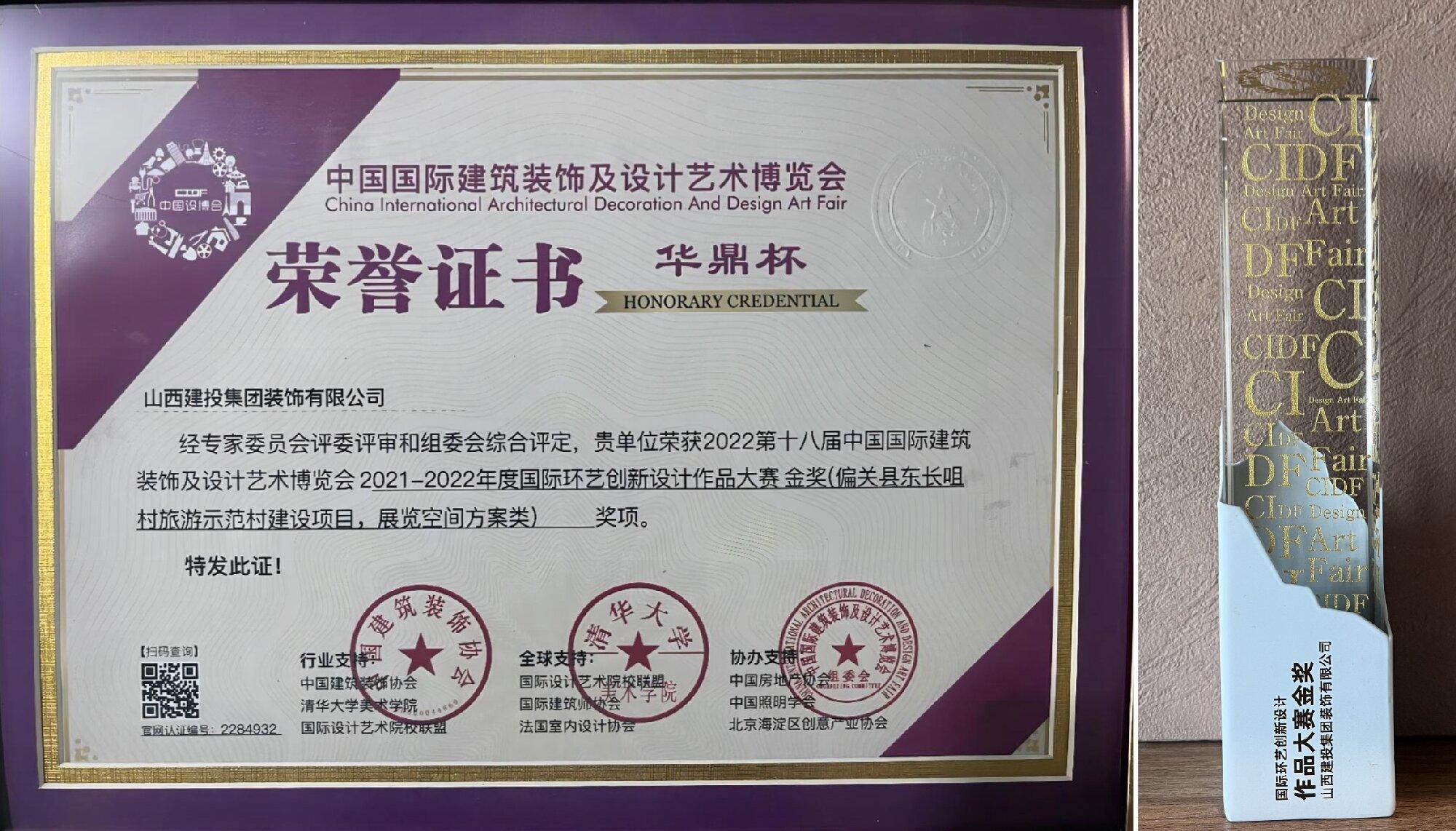 近期,第十八屆中國國際建筑裝飾及設(shè)計藝術(shù)博覽會在北京雁棲湖國際會展中心召開,會上山西建投裝飾公司獲得2021-2022年度中國建筑裝飾行業(yè)最具工匠精神設(shè)計機(jī)構(gòu)獎(山西省鄉(xiāng)村建設(shè)一站式綜合服務(wù)建設(shè)項目)、國際環(huán)藝創(chuàng)新設(shè)計作品大賽金獎(偏關(guān)縣東長咀村旅游示范村建設(shè)項目,展覽空間類)。