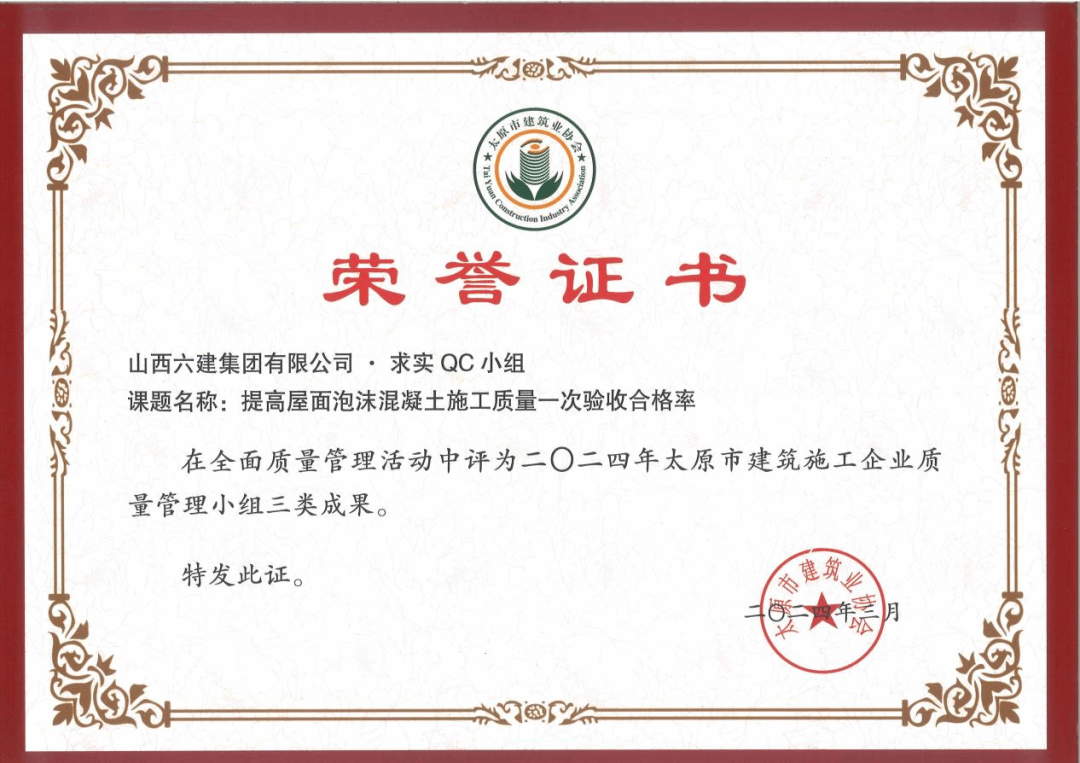 近日,太原市建筑業(yè)協(xié)會(huì)、山西建投集團(tuán)分別召開(kāi)2024年QC成果交流發(fā)布會(huì)。會(huì)上,山西建投六建集團(tuán)榮獲多項(xiàng)QC成果獎(jiǎng)。