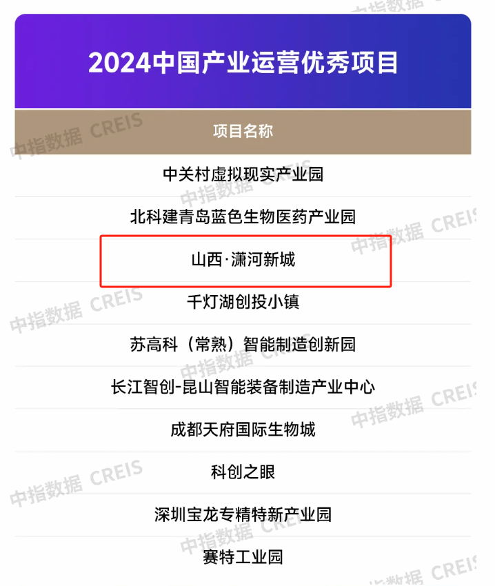 山西·瀟河新城榮獲“2024中國(guó)產(chǎn)業(yè)運(yùn)營(yíng)優(yōu)秀項(xiàng)目”殊榮