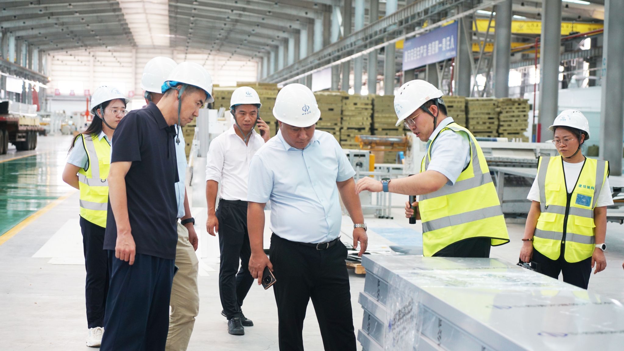 李榮健一行深入公司裝配式鋼結(jié)構(gòu)智能制造車間、高端金屬圍護(hù)結(jié)構(gòu)智能制造車間、裝配式鋼結(jié)構(gòu)辦公生活區(qū)及展示中心進(jìn)行實(shí)地參觀,詳細(xì)了解公司在裝配式鋼結(jié)構(gòu)、高端金屬圍護(hù)結(jié)構(gòu)領(lǐng)域的裝備優(yōu)勢、技術(shù)實(shí)力、市場開發(fā)、工程業(yè)績等情況,對瀟河產(chǎn)業(yè)公司在推廣裝配式建筑以及推動建筑產(chǎn)業(yè)轉(zhuǎn)型升級等方面取得的成果表示贊賞。