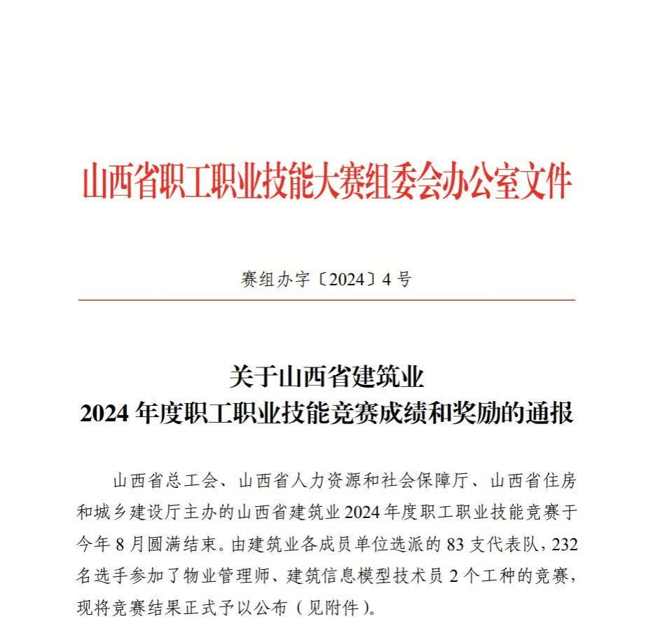 由山西省總工會(huì)、山西省人社廳、山西省住建廳聯(lián)合舉辦的山西省建筑信息模型(BIM)技術(shù)員技能競(jìng)賽于8月在太原舉行。山西建投云數(shù)智公司選手衛(wèi)星在競(jìng)賽中脫穎而出,榮獲第五名。