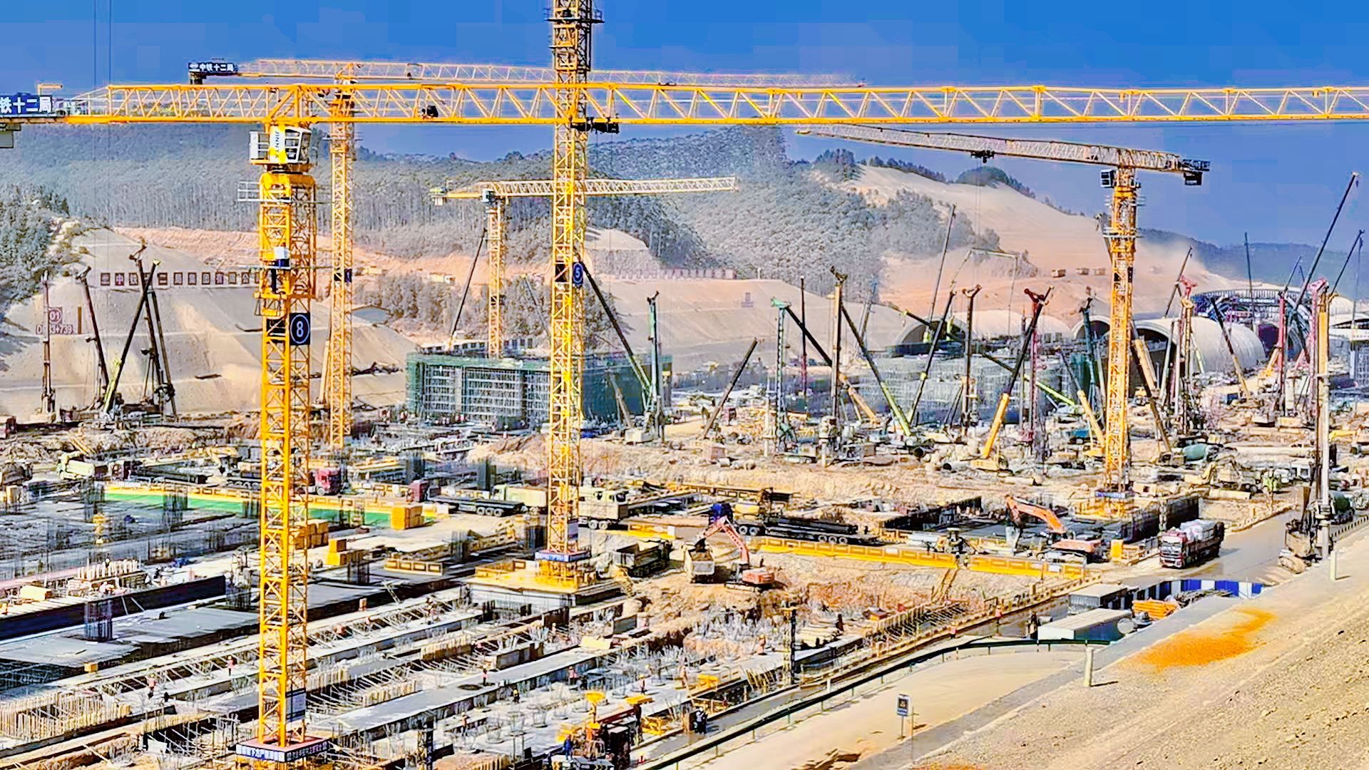 在廣州至湛江高速鐵路珠三角樞紐機場站前工程項目現(xiàn)場,一臺臺晉塔塔式起重機正有條不紊地吊裝,高效配合項目建設(shè)各項施工需求。