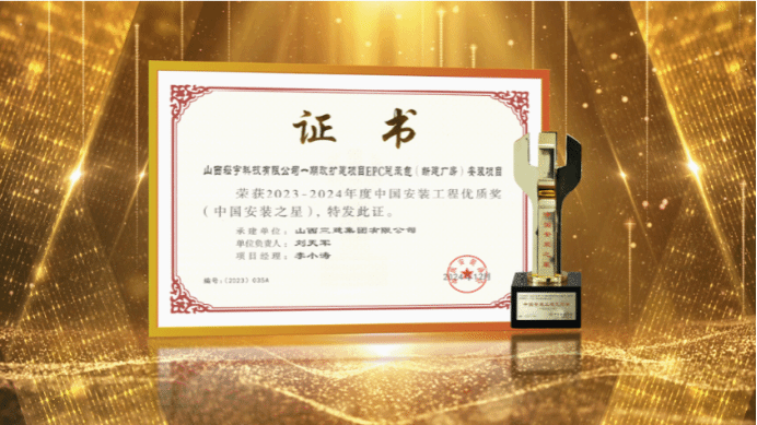 近日,山西建投三建集團(tuán)收到“中國(guó)安裝工程優(yōu)質(zhì)獎(jiǎng)”(中國(guó)安裝之星)獎(jiǎng)杯,承建的山西崧宇科技有限公司一期改擴(kuò)建項(xiàng)目EPC總承包(新建廠房)安裝項(xiàng)目,在2023-2024年度中國(guó)安裝工程優(yōu)質(zhì)獎(jiǎng)評(píng)選中脫穎而出,榮獲“中國(guó)安裝工程優(yōu)質(zhì)獎(jiǎng)”(中國(guó)安裝之星)。