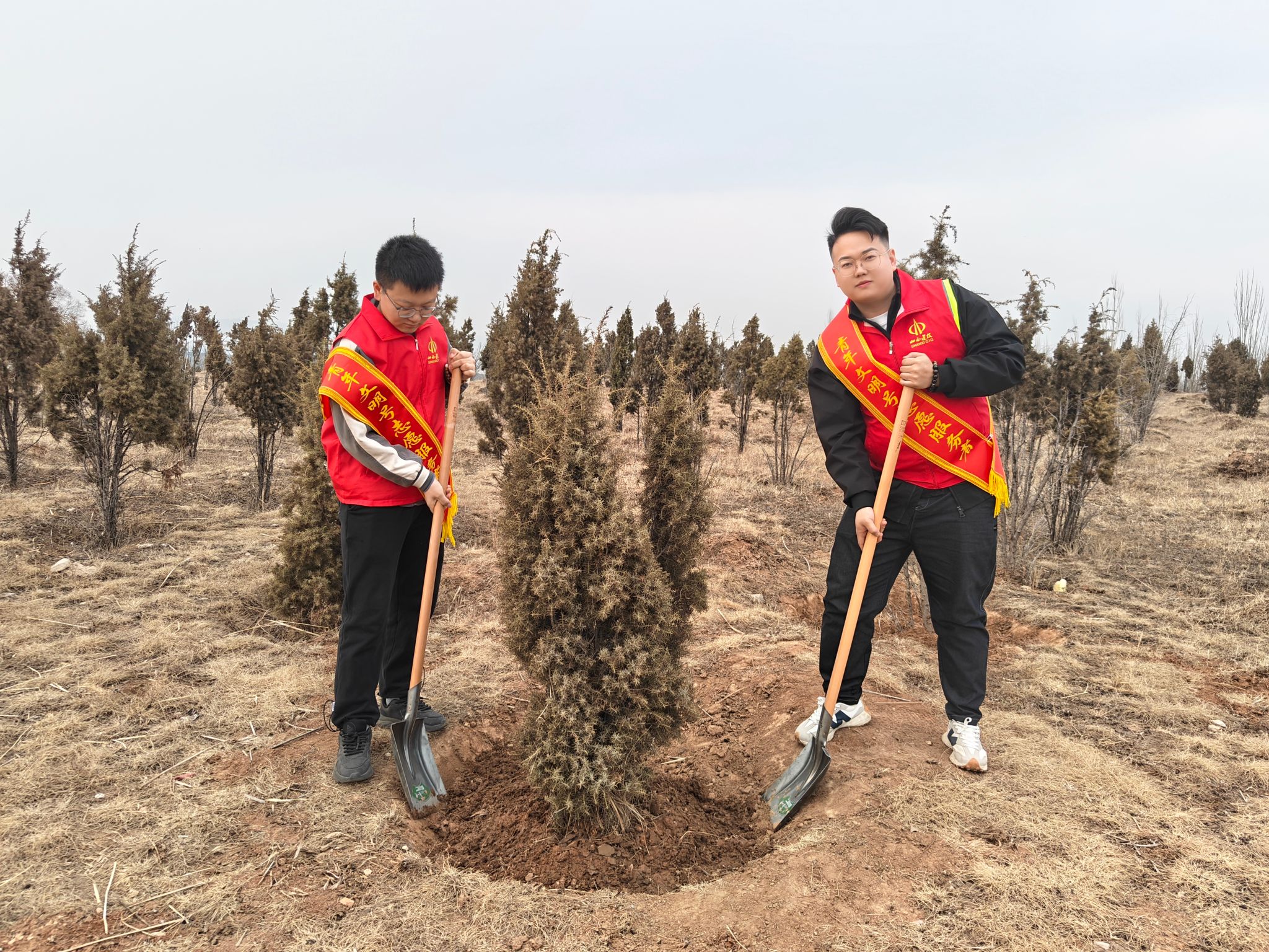 植樹現(xiàn)場,團員青年們熱情高漲,有的揮鍬鏟土,有的扶苗填坑,有的澆水灌溉,大家配合默契、干勁十足,全身心地投入到義務(wù)植樹活動中。大家紛紛表示,此次活動十分有意義,在勞動中收獲了快樂,也增強了環(huán)保意識和社會責(zé)任感。