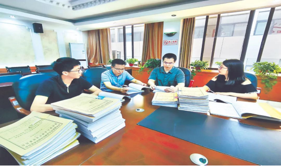 圖為九龍坡區(qū)紀委監(jiān)委案件審理室工作人員研究馮海軍案定性相關證據(jù)。向導 攝