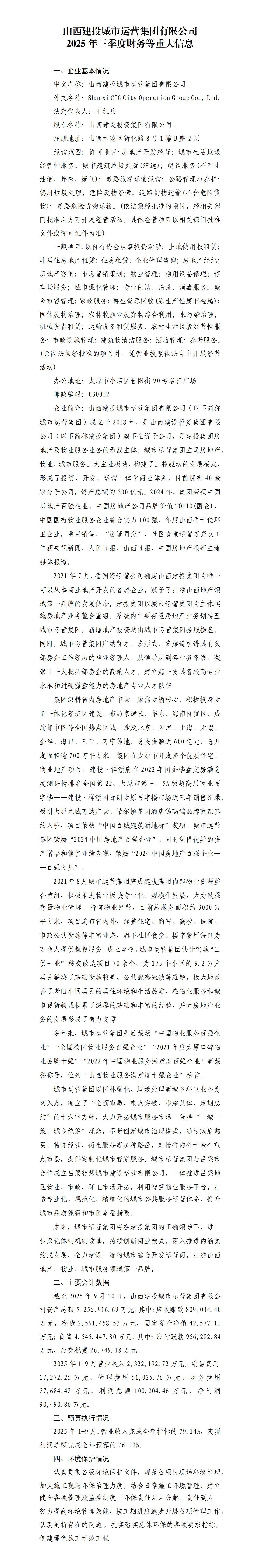 展望未來,山西建投將在省委省政府的正確領(lǐng)導(dǎo)下,進(jìn)一步深化體制機制改革,持續(xù)創(chuàng)新商業(yè)模式,完善現(xiàn)代企業(yè)治理體系,深入推進(jìn)內(nèi)涵集約式發(fā)展,促進(jìn)經(jīng)營規(guī)模和經(jīng)濟效益持續(xù)穩(wěn)健增長。