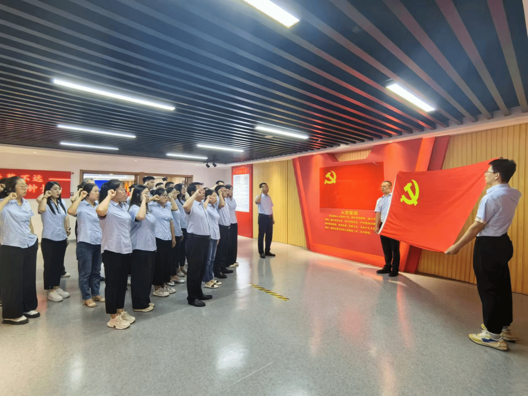 物貿(mào)公司開(kāi)展“我與黨旗合個(gè)影”主題活動(dòng),黨員們積極響應(yīng),用鏡頭定格信仰、用表白彰顯初心;組織黨員干部赴國(guó)民師范舊址革命活動(dòng)紀(jì)念館開(kāi)展“筑牢廉潔防線 堅(jiān)守紀(jì)律底線”主題黨日活動(dòng)。