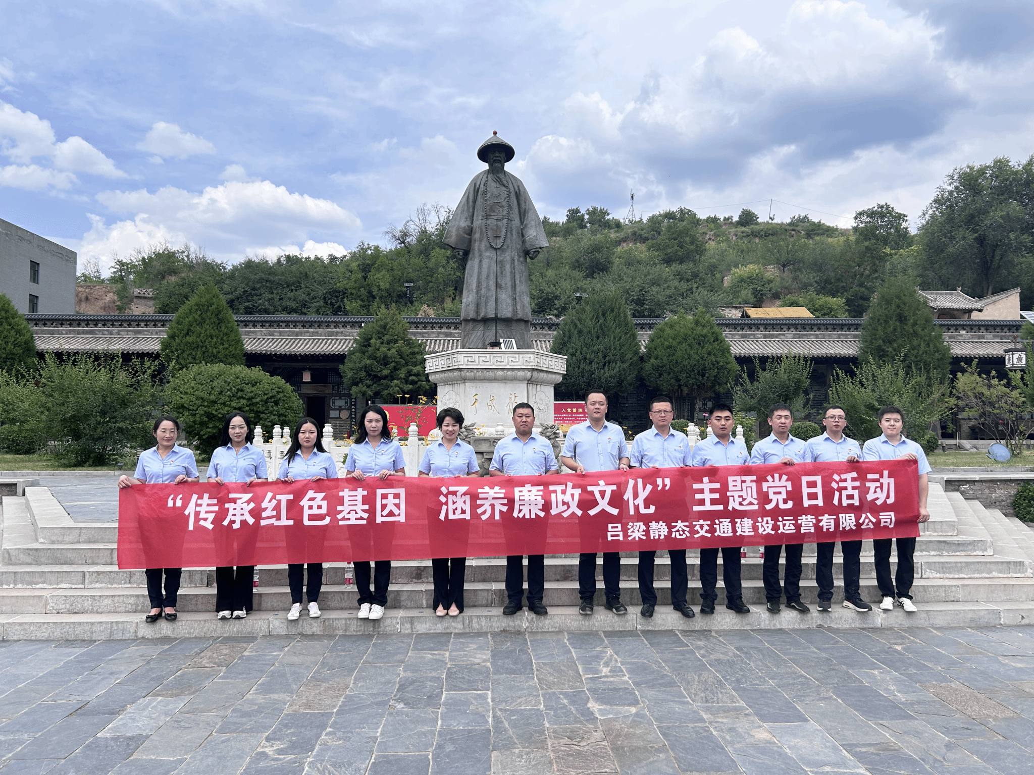 靜態(tài)交通公司組織黨員干部前往方山縣于成龍廉政文化園開(kāi)展“傳承紅色基因 涵養(yǎng)廉政文化”主題黨日活動(dòng),共同瞻仰于成龍塑像、重溫入黨誓詞,了解了于成龍從政生涯。