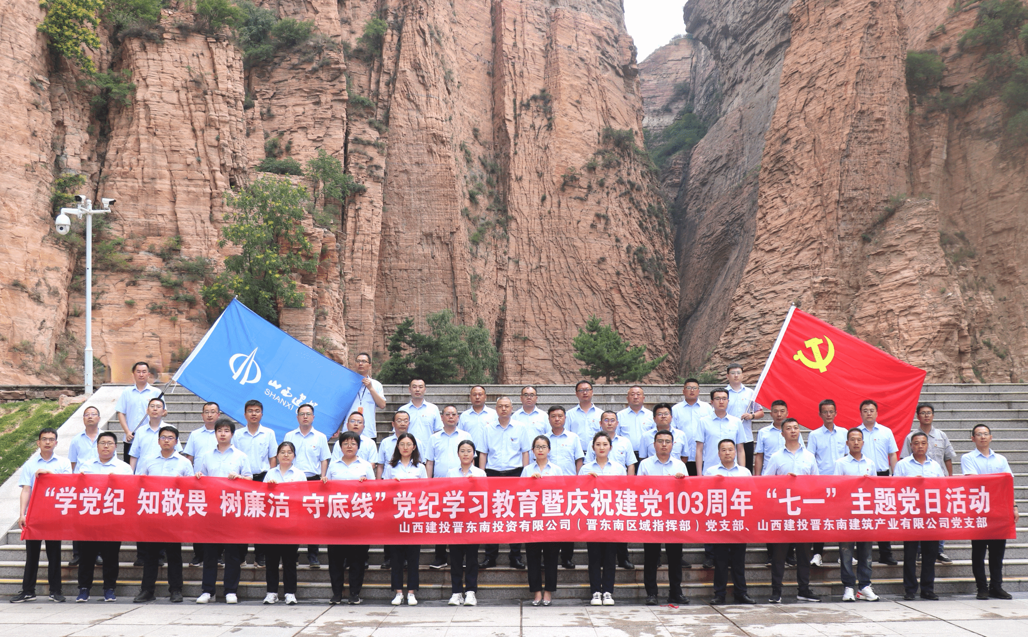 晉東南投資公司(晉東南區(qū)域指揮部)聯(lián)合晉東南產(chǎn)業(yè)公司組織黨員干部赴長(zhǎng)治市黎城縣黃崖洞革命教育基地、平順縣西溝展覽館開(kāi)展“學(xué)黨紀(jì)、知敬畏、樹(shù)廉潔、守底線”黨紀(jì)學(xué)習(xí)教育暨慶祝建黨103周年“七一”主題黨日活動(dòng),重溫老一輩革命家艱苦奮斗的抗戰(zhàn)歷程和勞模申紀(jì)蘭同志建設(shè)西溝村事跡。